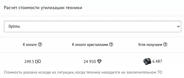 So, our first client comes to us in an old, worn-out "Optima"! We put this old, rusty wreck in for recycling. To simplify all the calculations: the wear and tear of this wreck was such that we paid the taxi driver only 249.5 TXM. We take only one client so that our math is pristine. We are waiting for the employees to completely utilize this trough, so that we have all the figures at hand. We have 15 employees with a salary of 20% - we pay salaries to employees, sell coal. That's it! Now we have absolutely all the input data to calculate how much we can earn.