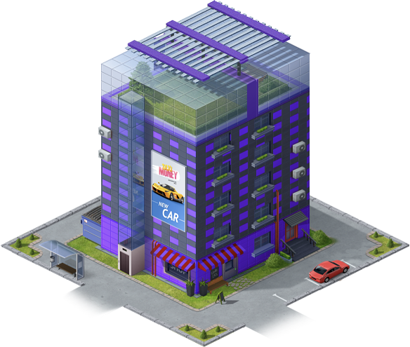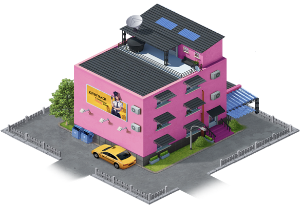Персональные постройки всех игроков и компаний будут строиться в одном виртуальном районе города. Рядом с вашим домом легко сможет появится соседский дом другого игрока. Все бизнесы теперь будут представлены также постройками на виртуальной карте Taxi-Polis'а. Чтобы основать новый бизнес, нужно будет построить соответствующее здание.