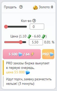 Биржа может находиться в 2-х состояниях: сбор заявок на продажу и торги. Вы можете создать ордер на продажу Вашей руды только тогда, когда биржа открыта для сбора заявок. Для этого укажите количество единиц руды, которое Вы хотите продать. Далее укажите цену сделки. И нажмите на кнопку «Разместить».