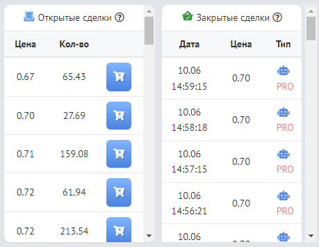 Блок «Открытые сделки», частично представляющий информацию о других выставленных в настоящее ордерах. А также блок «Закрытые сделки», информирующий Вас о том, какой объём руды и по какой цене биржа выкупала за последнее время.