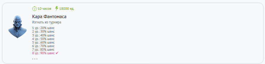 С помощью “Кары Фантомаса” Вы можете выгнать не более 50% команды оппонента. Как только 50% оппонентов покинут команду Вы получите соответствующее уведомление при использование способности.