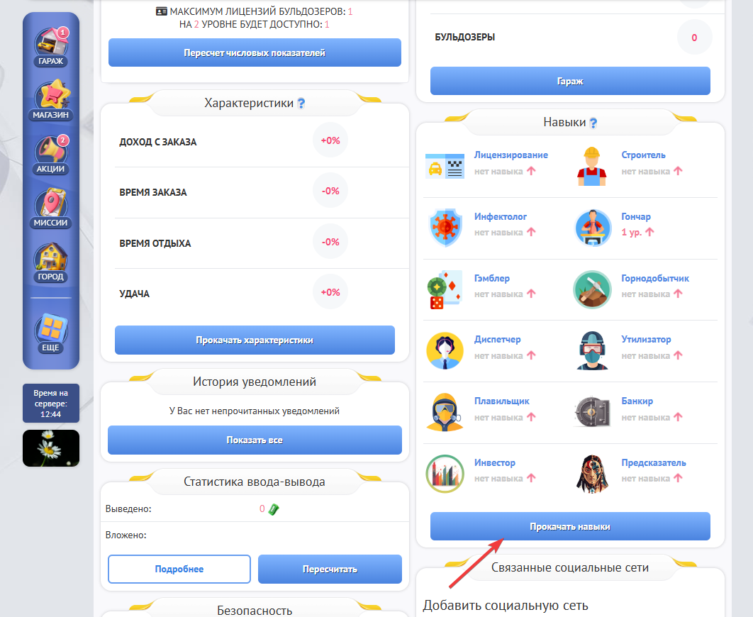 Также за работу в “Шиномонтажке” Ваш навык “Шиномонтажника” будет автоматически улучшатся, что позволит Вам сократить расход энергии во время работы и с каждым новым уровнем навыка Ваша личная перезарядка будет сокращаться.