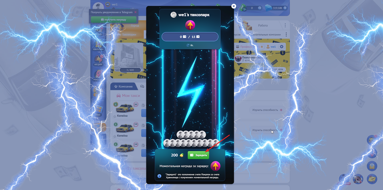 После того как Вы нажмете “Зарядить” у Вас заполниться прогресс бар, а также будет показано количество зарядов