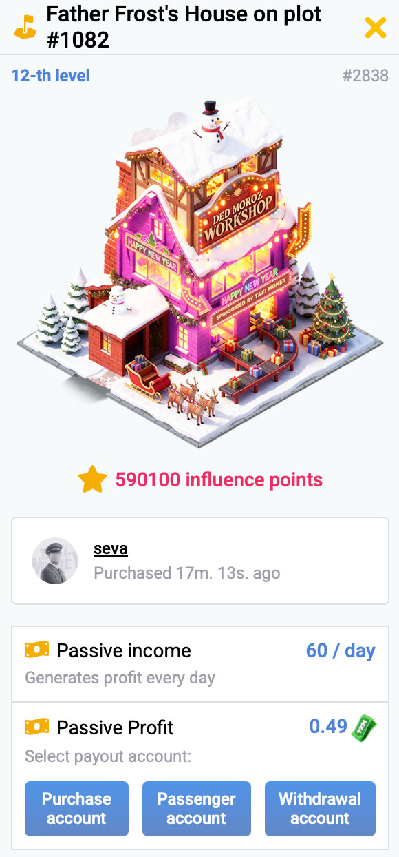 Invest in Taxi-Polis real estate and get additional passive income through influence in the city!