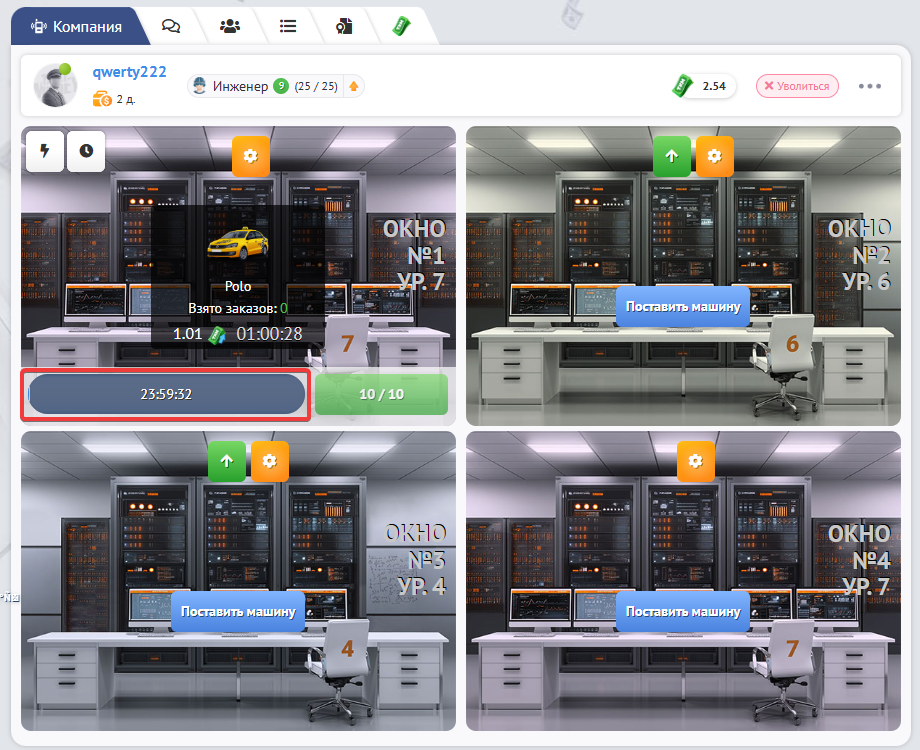 Вы устанавливаете свою технику в свободное окно. Чтобы установить технику нужно кликнуть “Поставить машину”